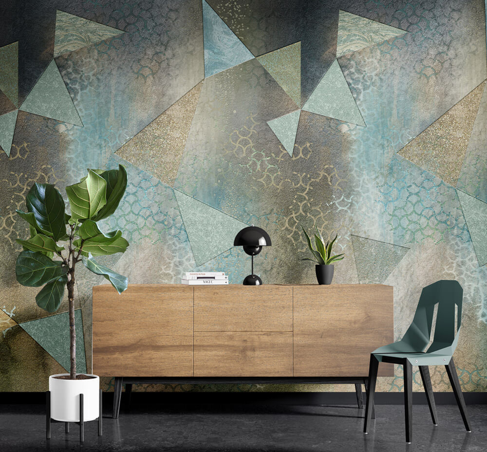 Deze prachtige driehoeken met geprinte texturen kun je natuurlijk doorplakken met meerdere rollen tot een hele wand met driehoeken, maar je kunt deze ook prima mixen & matchen met Allure X in the Room en Allure Mix&Match.
