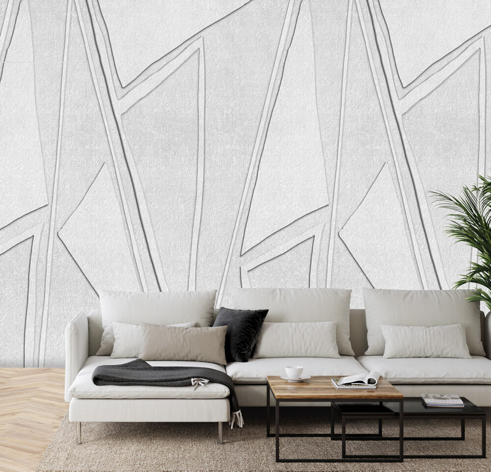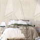 Boho dessin met royale driehoeken met geprinte structuur en diepte. Ook verkrijgbaar in zand kleur.nHet Behangdessin herhaalt elke 200x280cm. Wil je iets op maat? Laat het ons gerust weten. Je ontvangt 1 rol met daarop de 4 panels van 50cm breed en 280 lang.
