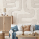 Nog een Boho dessin in deze Collectie. Dit dessin met organische lijnen past al gauw in elk interieur. Of het nu Boho is of Ethnic Chique dit behang past zich aan aan jouw kamer. Met deze zacht fossiel grijze wand, met geprinte textuur heb jij een mooie Flow op je wand, waar je niet snel op uitgekeken raakt. nHet Behangdessin herhaalt elke 200x280cm. Je ontvangt 1 rol met daarop de 4 panels van 50cm breed en 280 lang. Wil je iets op maat? Laat het ons gerust weten.
