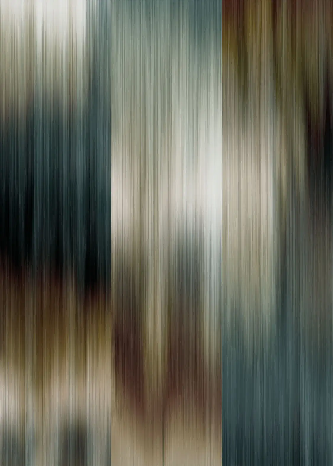 Dit After the Storm behang vangt de rust na een storm in een abstracte compositie van vervloeiende verticale kleurstrepen. Groene, bruine, creme en grijze tinten bewegen als een wazig bos in de wind over je muur. Het motion blur-effect geeft het dessin een kunstzinnige, bijna meditatieve uitstraling. Ideaal als accentwand in een woonkamer, slaapkamer of kantoorruimte.