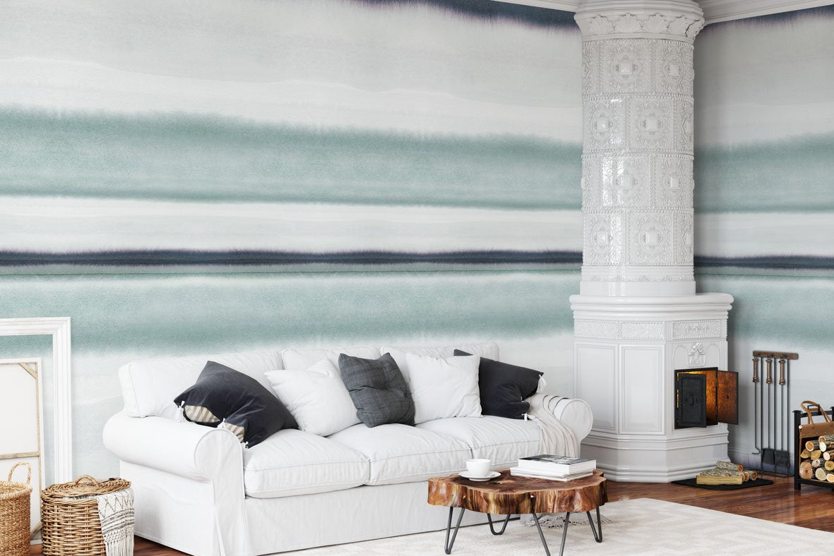 Het Long Island behang in zeegroen en blauw brengt de frisheid van de Scandinavische kust in je woonkamer. Zachte horizontale kleurlagen in mintgroen, zeegroen en diep indigo vloeien als golven in elkaar over. Dit behang is perfect voor wie houdt van kleur maar ook rust wilt bewaren, ideaal in een woonkamer, slaapkamer of badkamer.