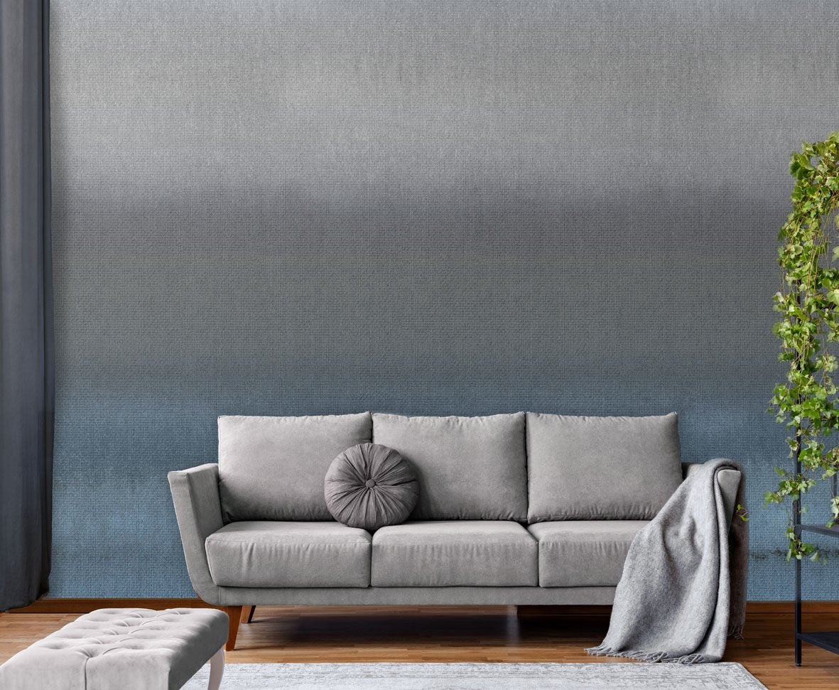 Het Vjaltring behang in blauw creëert een betoverende sfeer met zijn vloeiende ombre-overgang van staalblauw naar lichtgrijs. De subtiele linnentextuur voegt een tactiel element toe dat het design extra bijzonder maakt. Dit behang is ideaal voor een woonkamer of slaapkamer waar je een rustige maar indrukwekkende achterwand wilt.