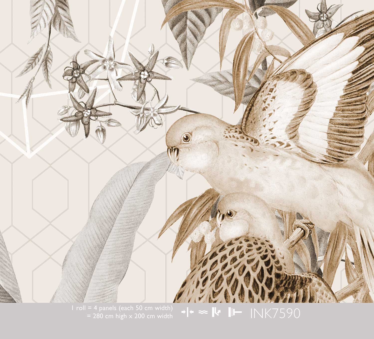 Het vliesbehang wordt op maat gemaakt in Nederland en past uitstekend bij een bohemian of landelijk interieur. De neutrale kleurstelling maakt het eenvoudig te combineren met bestaande meubels en accessoires.
