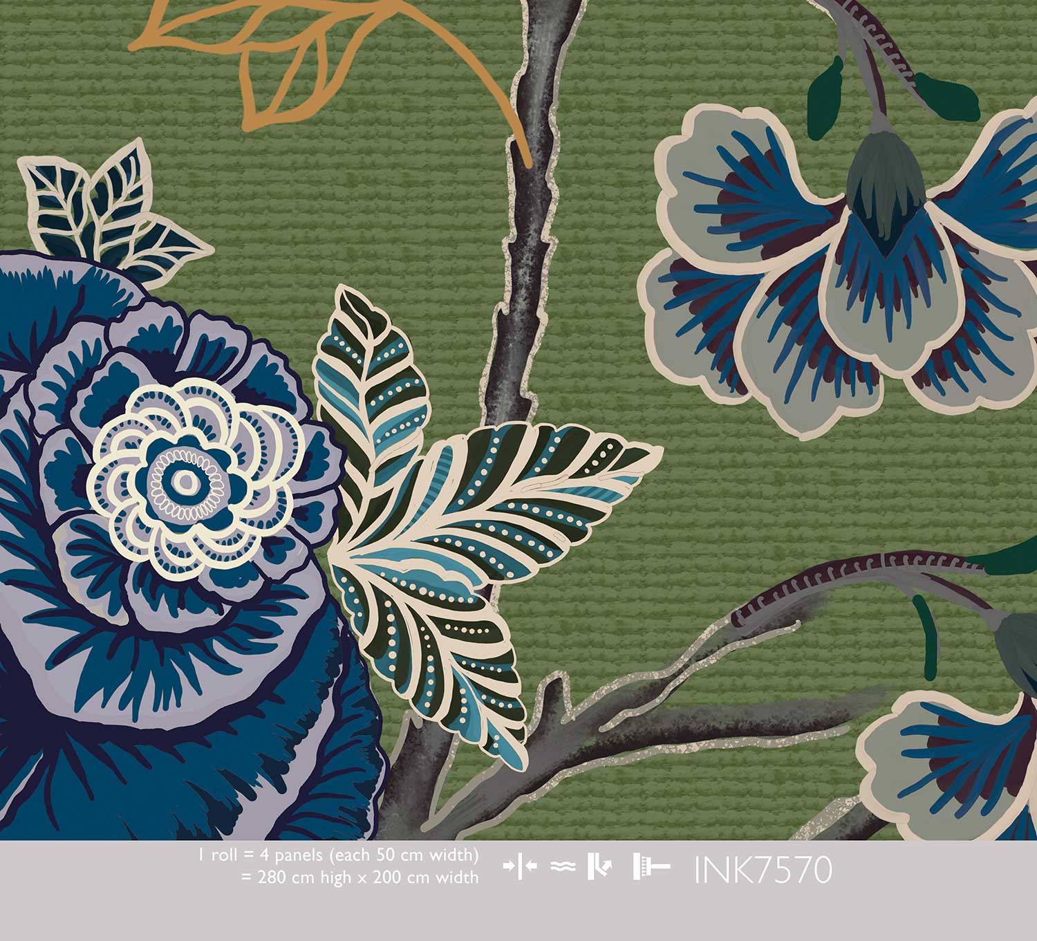 Het hoogwaardige vliesbehang is op maat verkrijgbaar en wordt in Nederland gemaakt. De groene basis past uitstekend bij een bohemian of klassiek interieur met houten meubels en warme texturen.