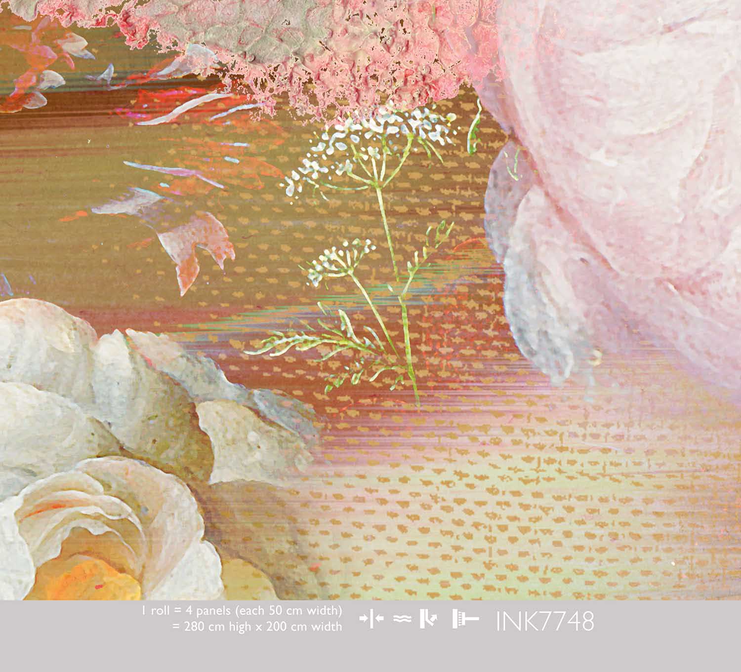 Het Glitch Museum Roses behang is een boeiende fusie van klassieke bloemenschilderkunst en moderne digitale esthetiek. Grote, weelderige rozen en pioenrozen in roze, koraal en wit lijken te zweven in een abstract, kleurrijk landschap. Zachte glitch-effecten en verfstreken in pasteltinten geven het ontwerp een eigentijds, kunstzinnig karakter.