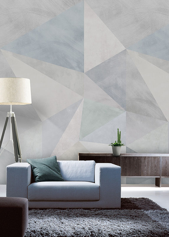 Het Loft Ice behang creëert een serene, ruimtelijke sfeer in je interieur. Grote driehoekige vlakken in zachte, ijskoude blauw- en grijstinten geven je muur een elegante, kalme uitstraling. Dit design is perfect voor de slaapkamer, woonkamer of een rustige thuiswerkplek.